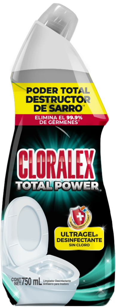 TIP: ¿Sabias que existen virus y bacterias que viven en el interior de tu inodoro? ¡Elimínalos con CLORALEX® Total Power® Aplique el producto, deje actuar al menos por 5 min y talle en caso de ser necesario. Haga una descarga para enjuagar.